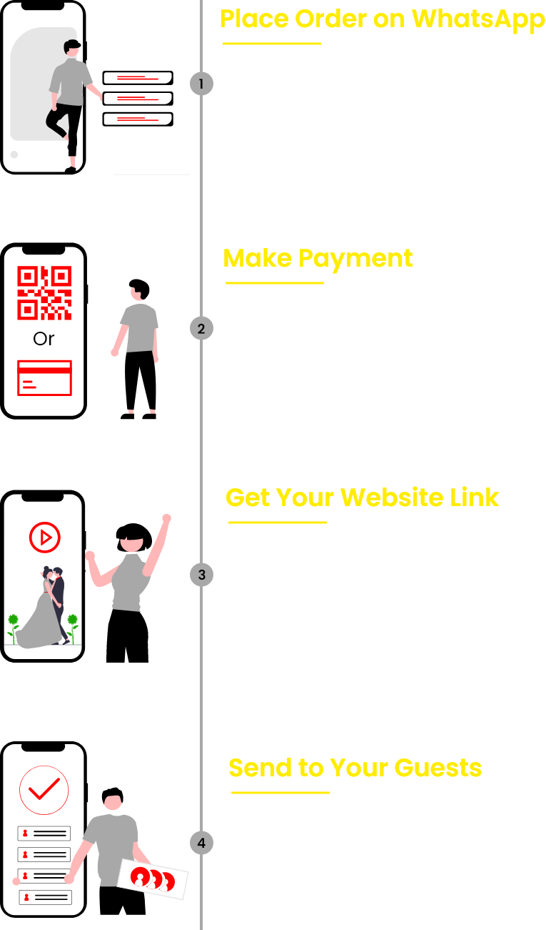 Just send the wedding details on WhatsApp — we’ll create and deliver your personalized wedding website without any hassle.